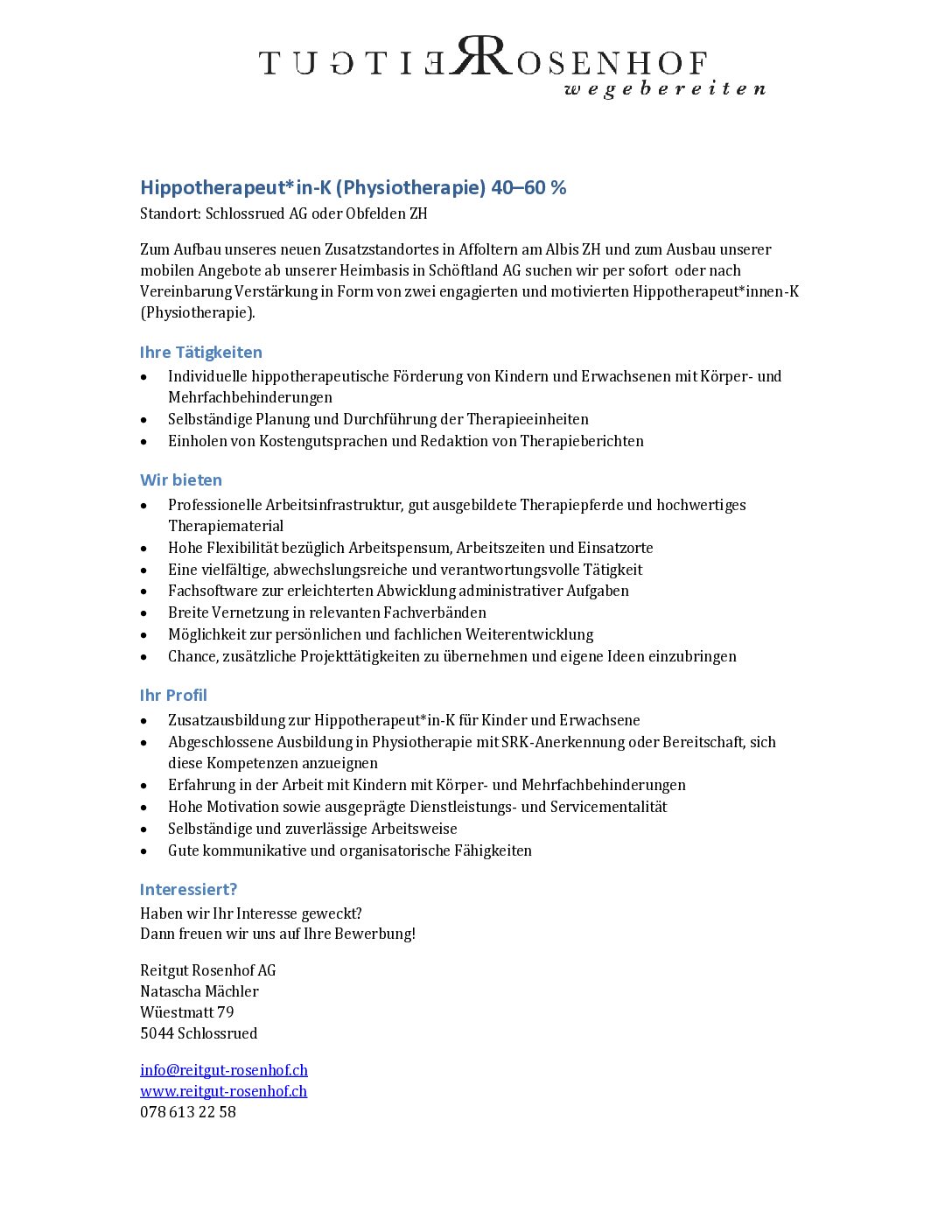 (Physiotherapie).Stelleninserat_Hippotherapie